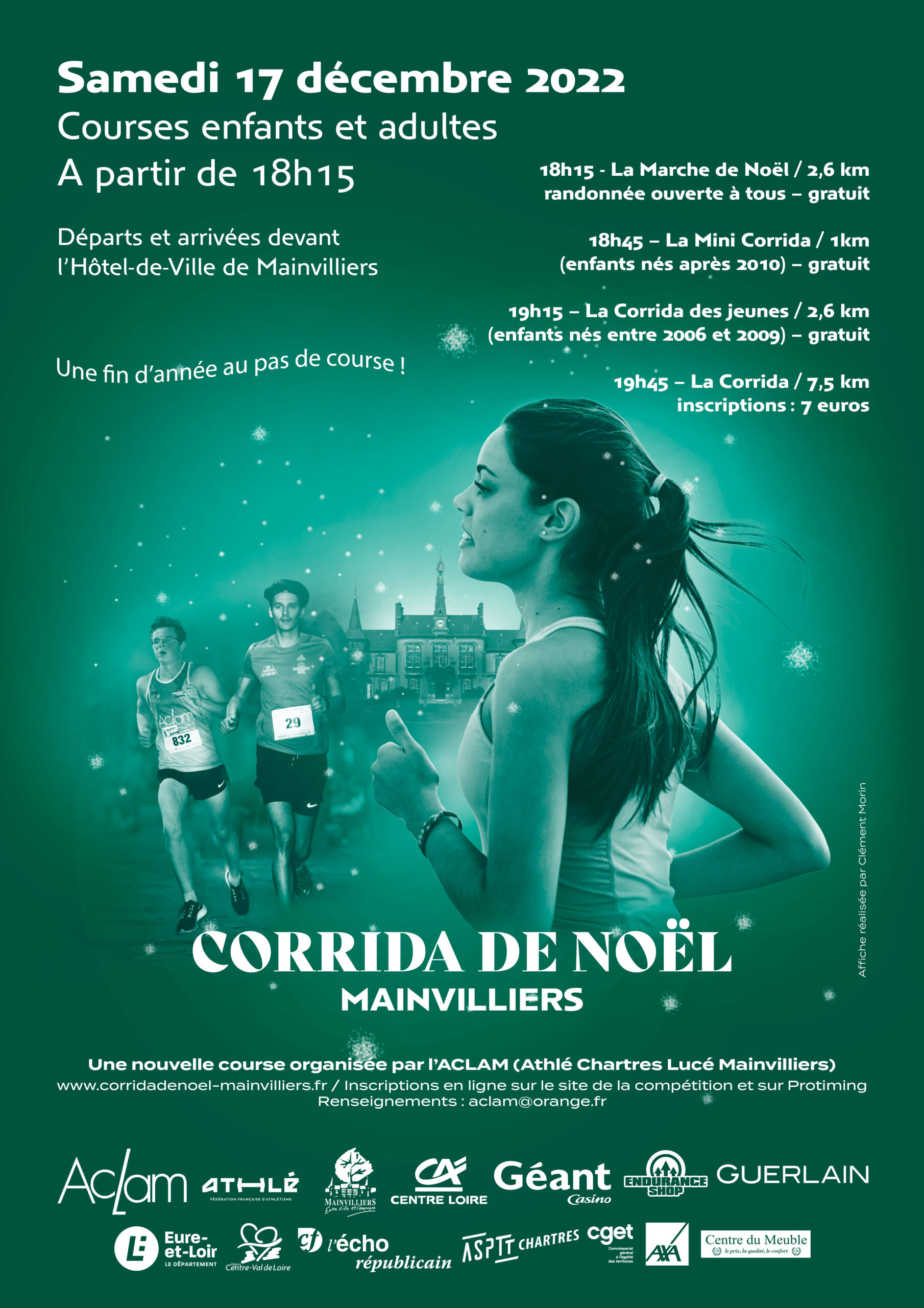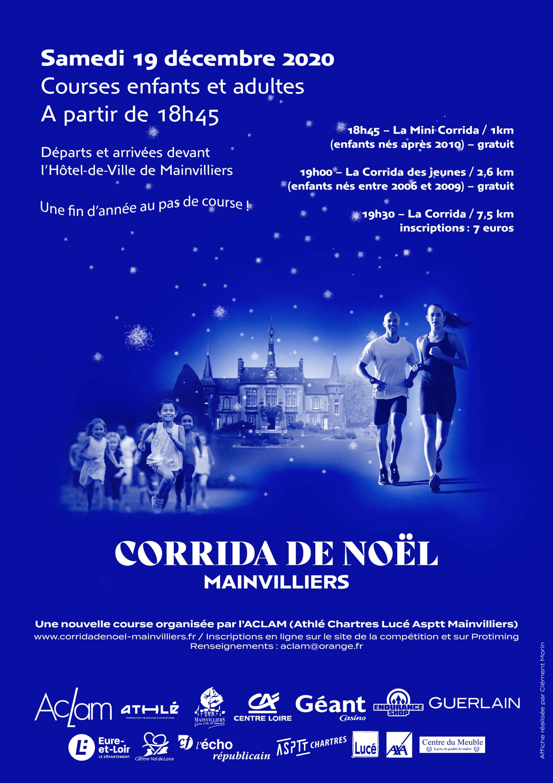 La Corrida de Noël sera de retour le 19 décembre 2026, pour sa sixième édition, avec probablement un parcours un peu modifié pour faire face à l’affluence. Un grand merci aux coureuses et coureurs, aux clubs présents, aux bénévoles de l’Aclam ou amis du club, aux riverains compréhensifs, à la Ville de Mainvilliers et à nos sponsors !